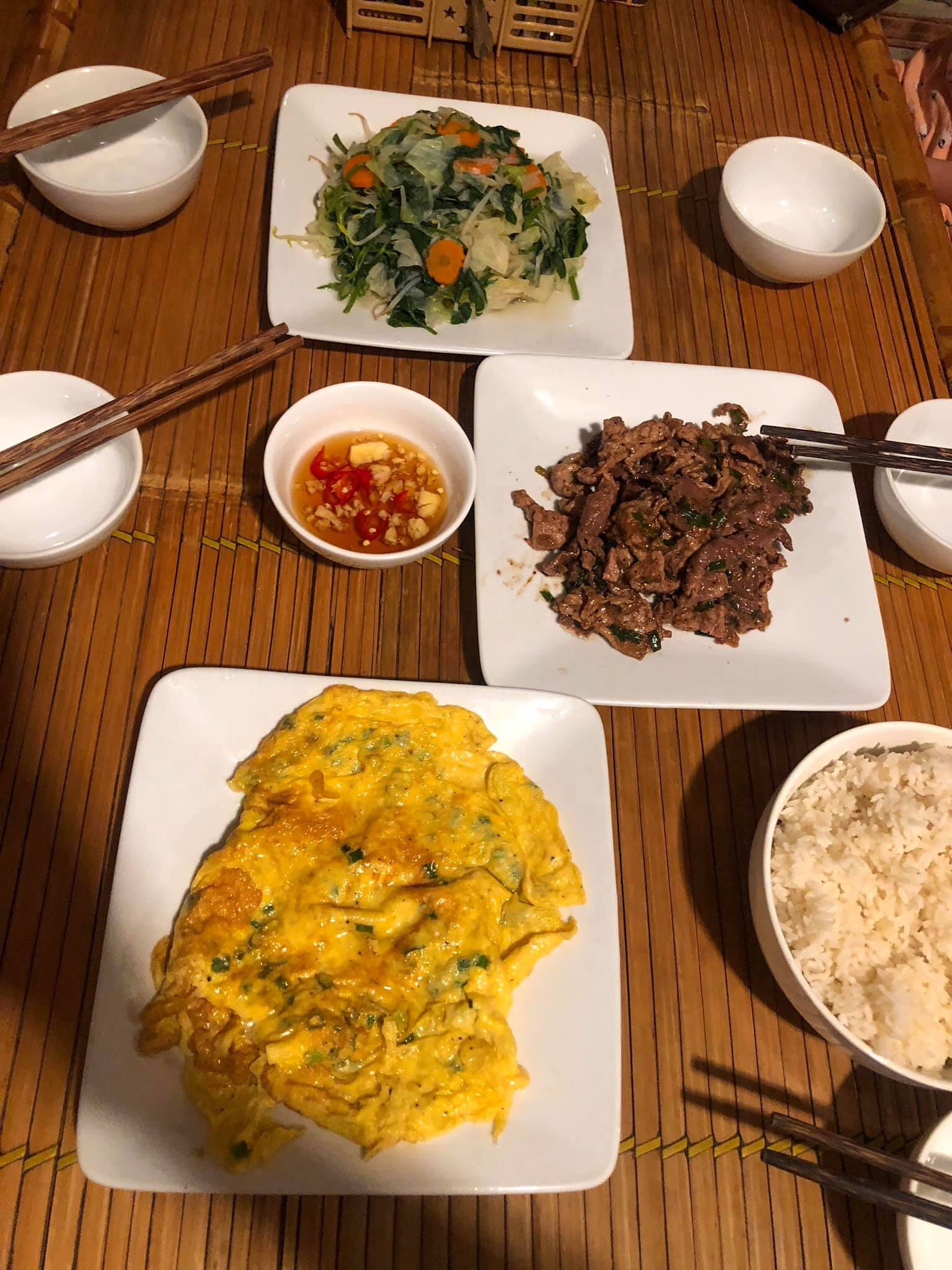 Homestay mà bọn mình dừng chân là Hàm Rồng ở gần 2 khu du lịch Tràng An và Hang Múa. Phòng ở đây rất rộng rãi, không gian thì vô cùng thoáng mát. Đồ ăn ở tại homestay này cũng khá vừa miệng mình.