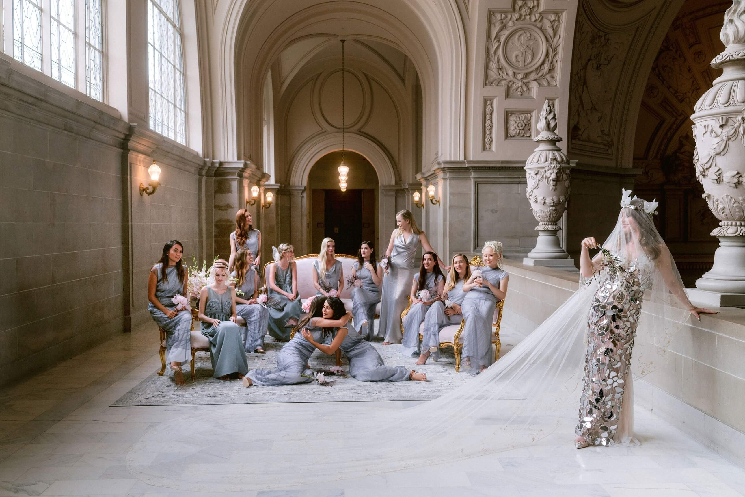 Tâm điểm của thành phố San Francisco tháng 11/2021 là đám cưới vô cùng thời trang và sang trọng của cô người mẫu Ivy Getty - nàng công chúa kiêu sa của đại gia tộc dầu mỏ Getty. Bởi đó là Ivy Getty, John Galliano phá lệ thực hiện một loạt thiết kế Maison Margiela custom-made cho cô cùng dàn phù dâu lên đến 14 người. Riêng nàng dâu là thiết kế Maison Margiela Haute Couture Customized vô cùng ngoạn mục, trên đầu cô còn là chiếc vương miện và một chiếc khăn che mặt tạo nên một phong thái thanh nhã.