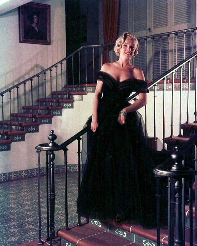 "Biểu tượng sex" của mọi thời đại Marilyn Monroe sang trọng và quý phái lạ thường trong một chiếc váy đen hở vai đầy tinh tế tại Oscar 1951.