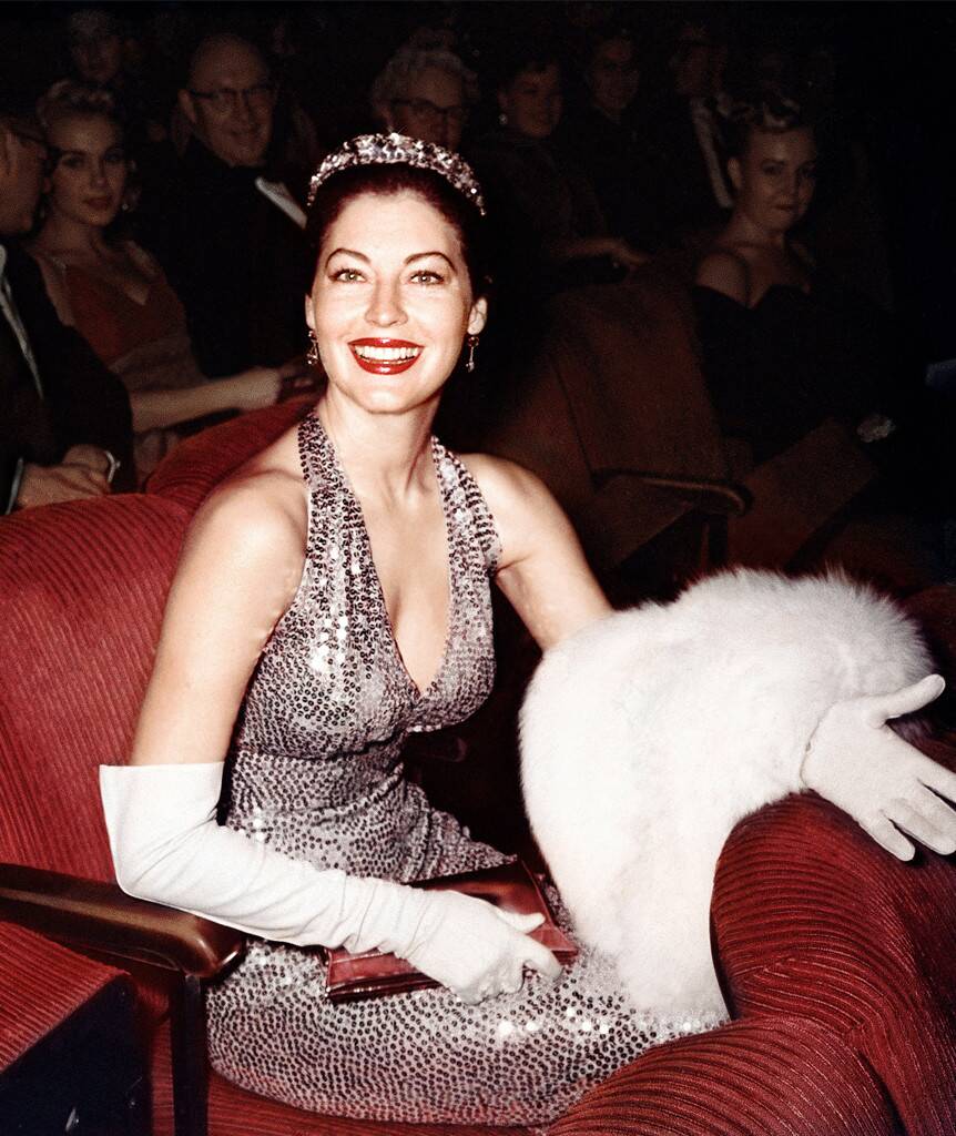 Năm 1960, nữ diễn viên thuộc thế hệ vàng của Hollywood Ava Gardner xinh đẹp đến nghẹt thở trong chiếc váy xẻ sâu và găng tay trắng.