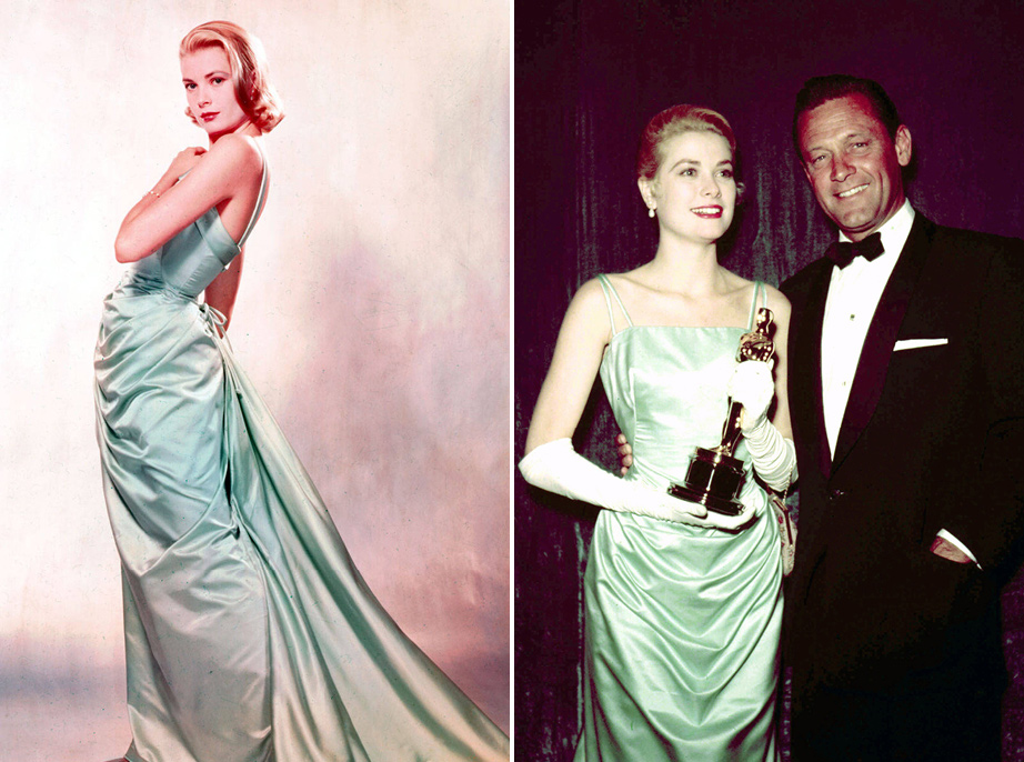 Chiếc váy xanh nhạt của Grace Kelly diện trên thảm đỏ Oscar 1955 đã trở thành huyền thoại. Phần chân váy cách điệu cùng chất liệu lụa bóng quý phái lộng lẫy, nhiều người đánh giá đây là chiếc váy dạ hội "vượt thời gian".